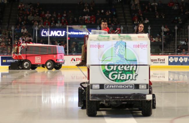 She’s one of two drivers at the arena, and on Griffins game nights, the first of her three passes takes place at roughly 6:48 p.m., after both teams have their pre-game warmup, with one more after each of the first two periods. And for Voelkel, a Grand Rapids Community College student on track to graduate in August 2023, nothing is left to chance.