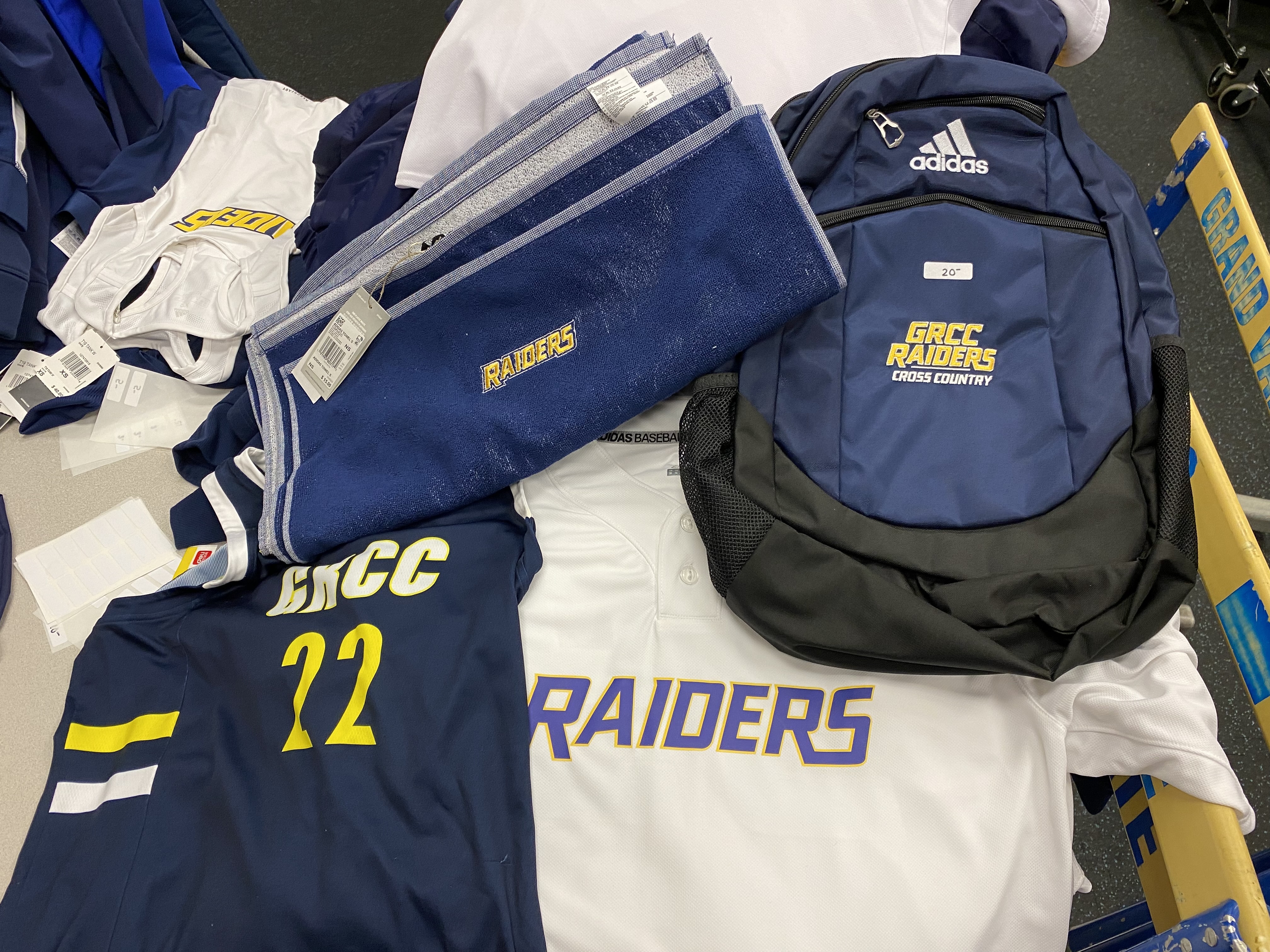 The sale includes jerseys, backpacks, jackets, polo shirts and other items, and proceeds will be used to support the GRCC Athletic program. Most of the items are unused, but others have been worn in competition and practice by student-athletes of the past.
