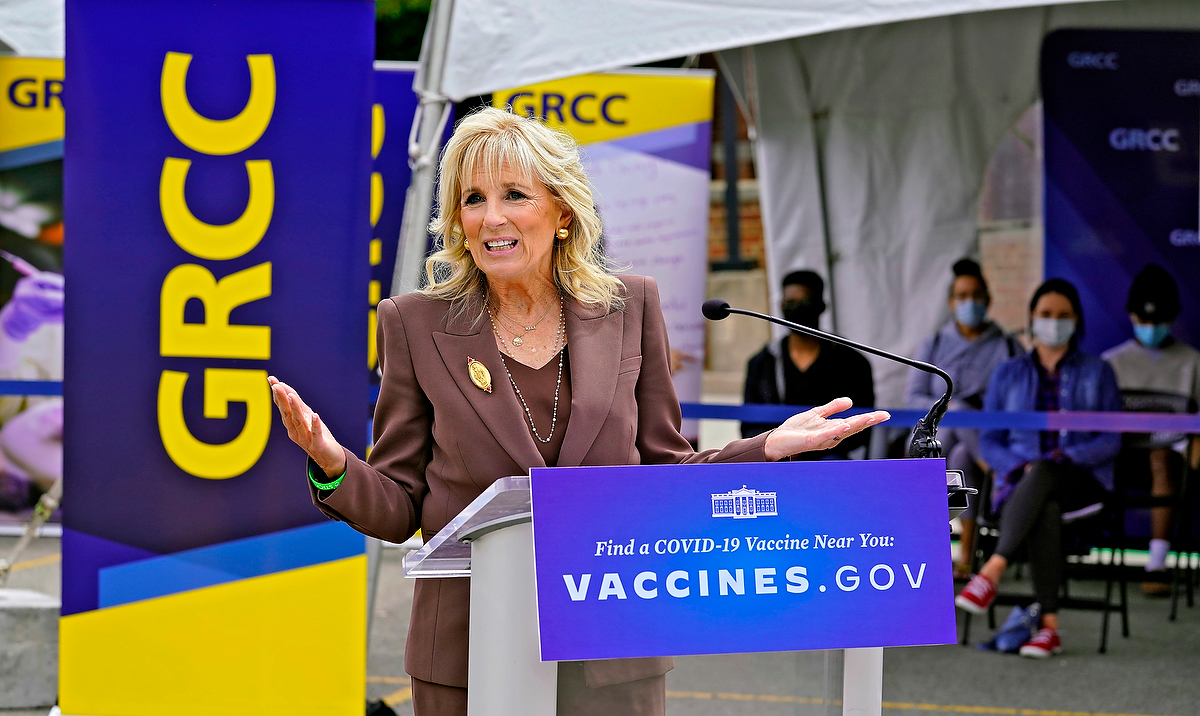 May 27, 2021, GRAND RAPIDS, Mich. – First Lady Jill Biden praised Grand Rapids Community College’s leadership in helping students and community members get vaccinated against COVID-19 during a tour of a campus pop-up clinic on Thursday.