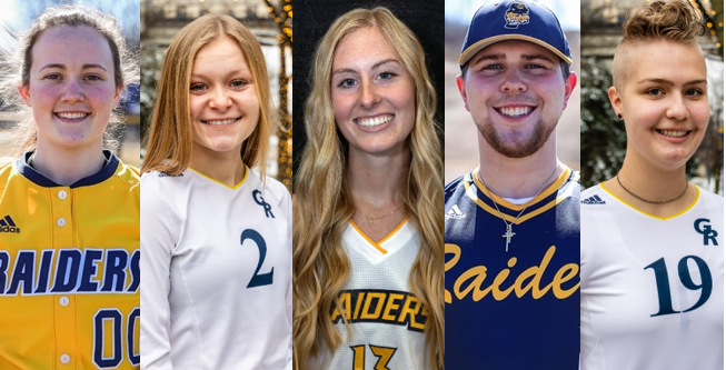 Seven Raiders earned All-Academic Second Team honors for GPAs between 3.80 and 3.99. Baseball players Caleb Engelsman from Rockford, Jeremy Marble from Sparta, and Matt Williams from Lake Orion earned the honor. They were joined by cross country runners Allison Hoop from Jackson, Mariah Vos from Byron Center, Alexzandria Webster from Grandville, and golfer Arie Jackman from Caledonia.