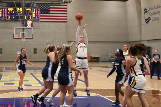 Jan. 26, 2022, GRAND RAPIDS, Mich. – Grace Lodes scored 21 points and grabbed 13 rebounds, leading the Grand Rapids Community College women's basketball team to a 59-48 victory over the visitors from Ancilla College on Wednesday.
