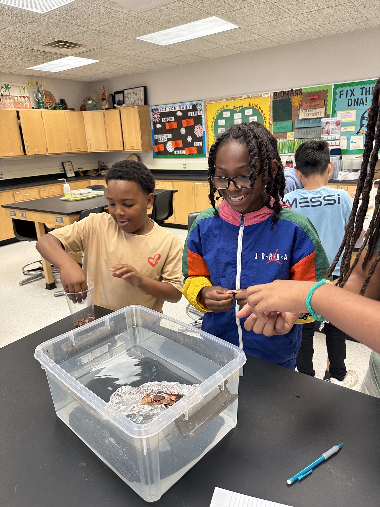 One room of students filled with laughter as the competition intensified to see who could build the strongest tinfoil boat.