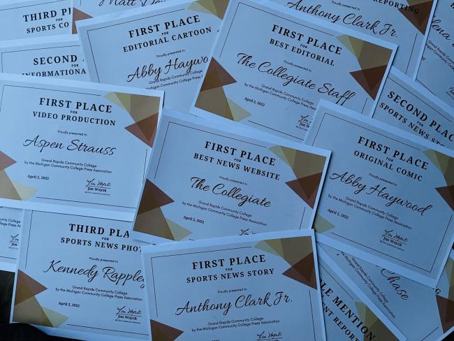 April 23, 2022, GRAND RAPIDS, Mich. – Grand Rapids Community College journalism students earned top honors from the Michigan Community College Press Association for writing, illustration and photography skills.