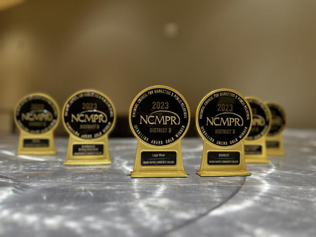 Oct. 10, 2023 GRAND RAPIDS, Mich. – The Grand Rapids Community College Communications team’s efforts to promote the affordable and high quality education available through GRCC earned six Gold Medallion Awards from the National Council for Marketing and Public Relations, an organization representing community colleges in the United States and Canada.