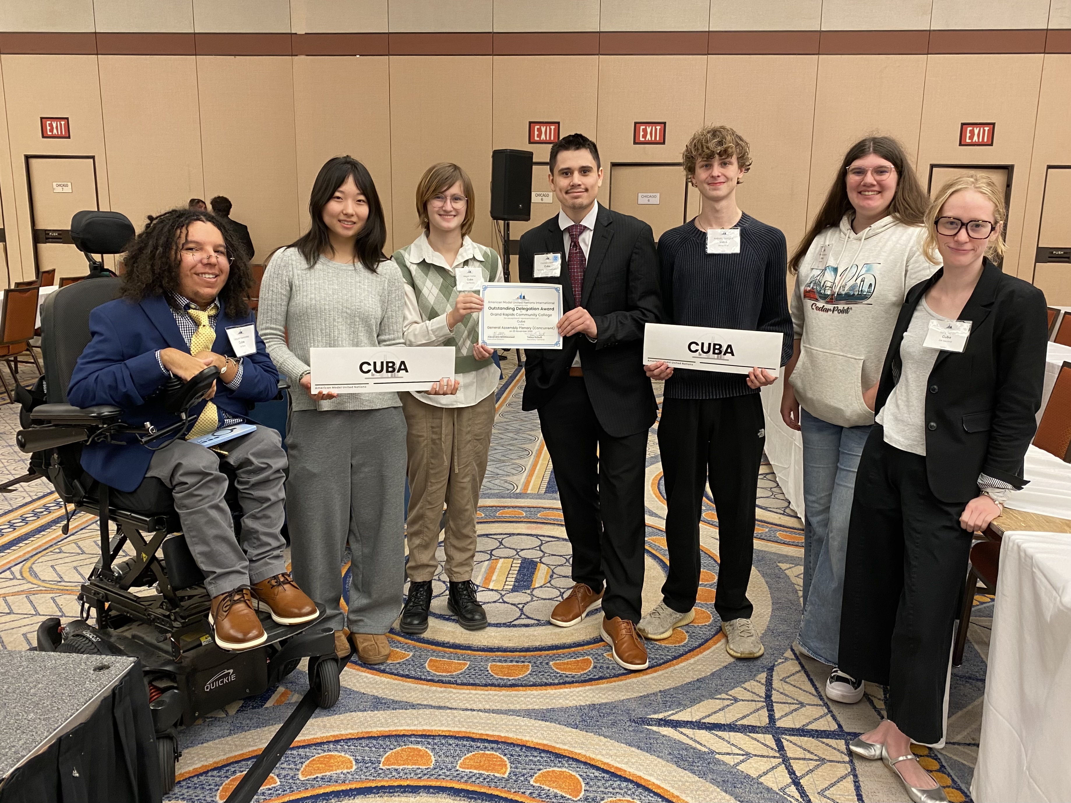 The team received the Outstanding Delegation award for its representation of Cuba at the General Assembly plenary meeting. Since first attending the conference in 2003, this is the highest honor GRCC students have earned at AMUN.
