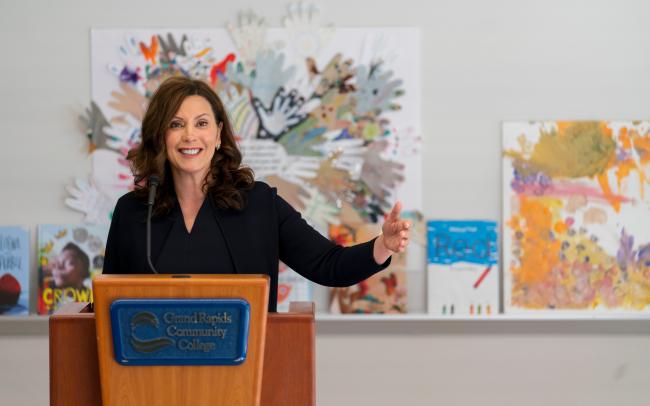 Whitmer discussed her proposals to expand opportunities and services using $1.4 billion in federal funding from the American Recovery Act at an event coordinated by the Early Neighborhood Learning Collaborative and hosted by GRCC.