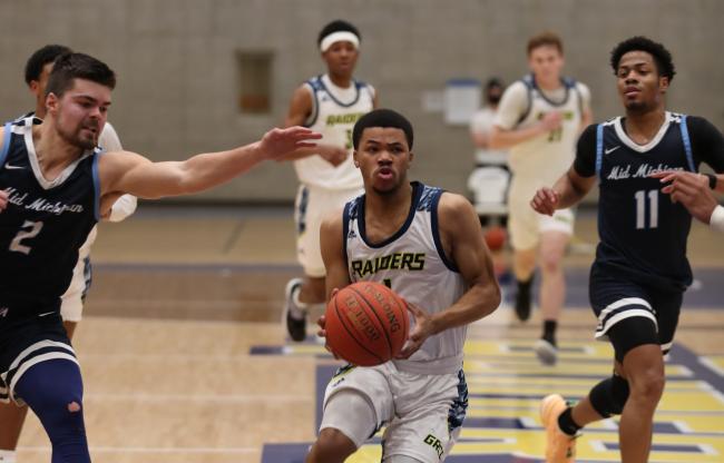 Jan. 13, 2021, SUMMIT TOWNSHIP, Mich. – The Grand Rapids Community College men’s basketball team battled Jackson College through three overtime periods, but fell short, losing 124-119 on Thursday.