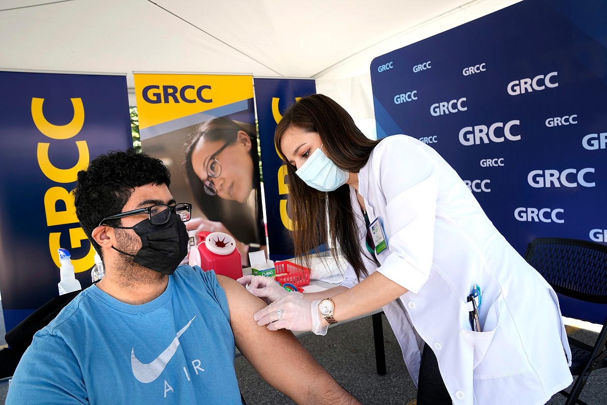 Aug. 9, 2021, GRAND RAPIDS, Mich. – Grand Rapids Community College is offering an incentive to encourage students to get the COVID-19 vaccine and plans on-campus vaccination clinics as part of efforts to keep the campus safe.