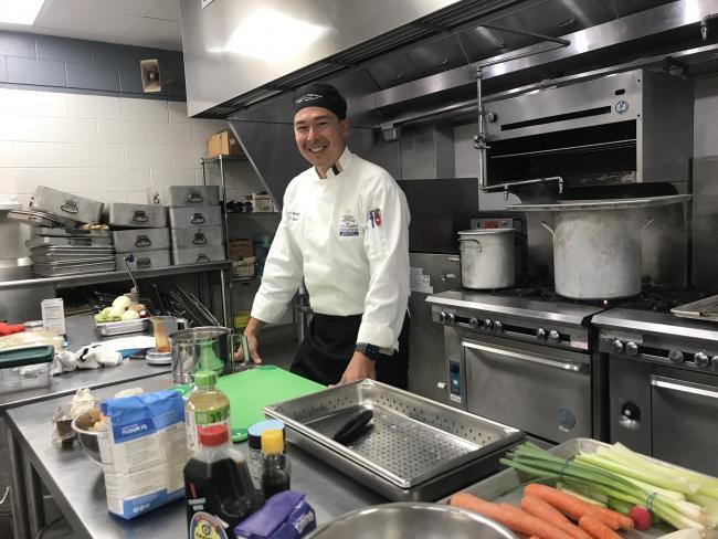 “I really wanted to focus on food, combining my two passions – culinary and business,” he said, taking a break in the Secchia kitchen on Tuesday while preparing for the competition. He also made time to speak to students in Chef Bob Schultz's class.