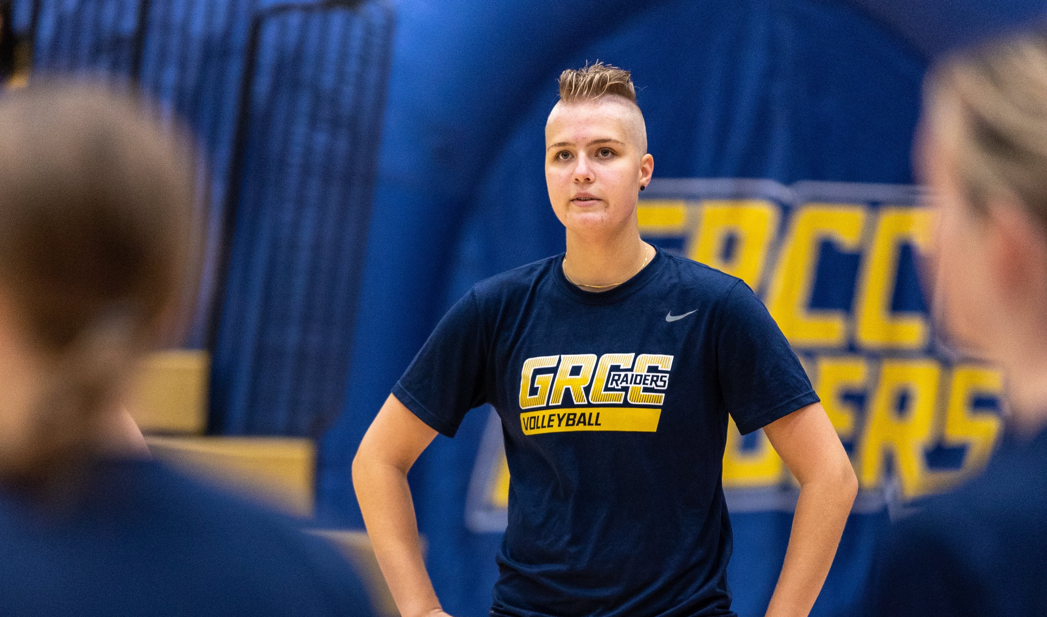 Oct. 12, 2022, GRAND RAPIDS, Mich. -- The Grand Rapids Community College volleyball team is on pace to finish as one of the program’s best blocking teams ever, largely because of sophomore Alena Visnovsky.