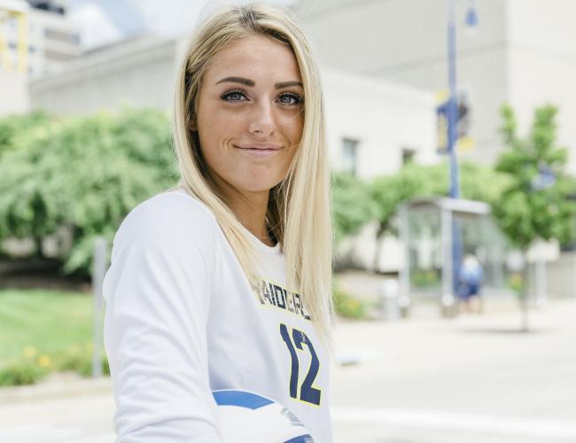 Holesinger, a sophomore from Rockford, Mich, totaled 45 kills, averaging 3.46 kills per set, and five blocks across the four matches on Aug. 20 and 21. Holesinger tied her career high of 17 kills against No. 3 Iowa Central Community College while hitting .500.