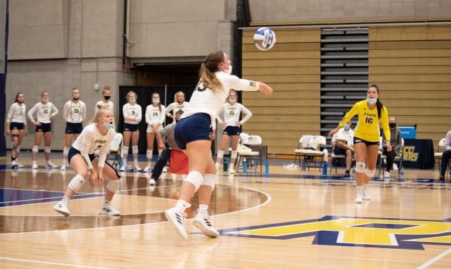 Holesinger ripped off 16 kills against the Macomb, with Audrey Torres adding 10 kills, Kylie Oberlin with seven, and Eliza Thelen with a collegiate high five kills.