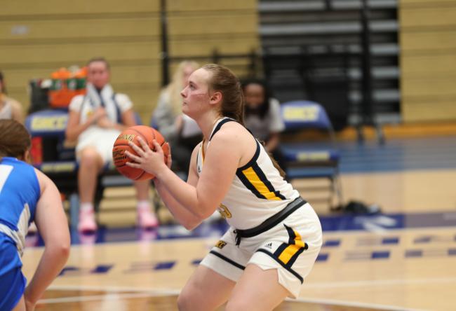 Dec. 5, 2022, GRAND RAPIDS, Mich. – The Grand Rapids Community College women’s basketball team snapped a three-game winning streak on Monday with a 70-59 loss to the Aquinas College junior varsity team despite big nights from Grace Lodes and Allison Kellogg.