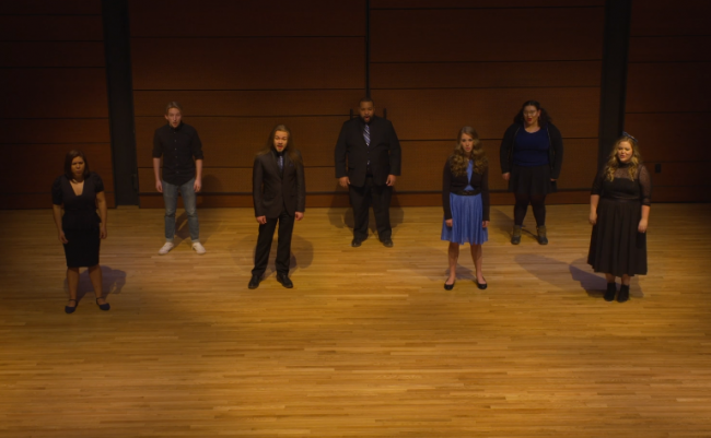 The class’ first in-person rehearsal was March 16. Students were indoors, in the choral rehearsal room with microphones enabling them to safely social distance and sing quietly, to spread fewer aerosols. The room also was emptied for 15 minutes every 30, moving outside or elsewhere to keep singing.