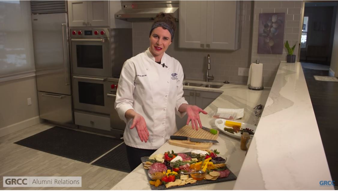 “We are so lucky to have alumni who are willing to share their talents,” said Jenna VandeKamp, GRCC’s development manager for Alumni Relations and Annual Giving. “Charcuterie boards are the latest culinary trend, and after some guidance from Chef Jenn, you’ll know how to adapt them to different events and preferences.”