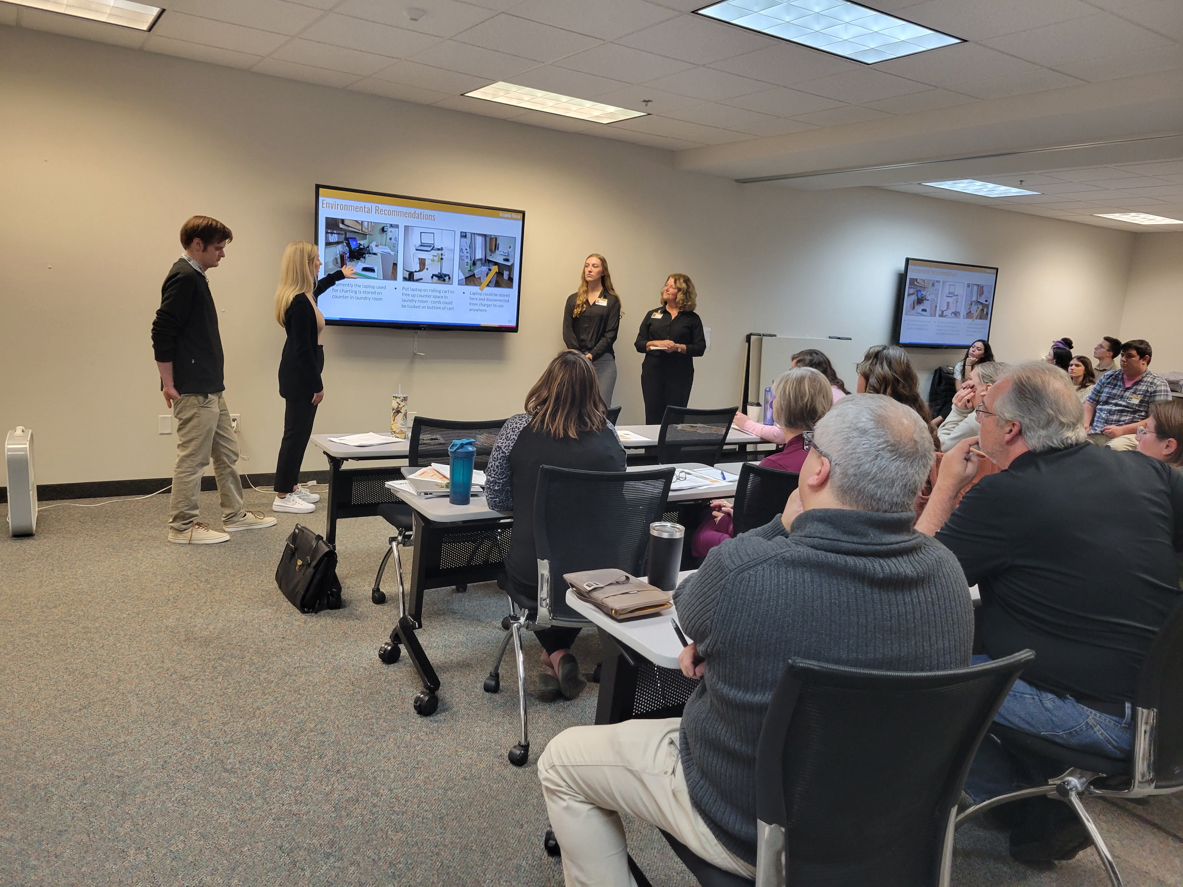 Together, Robin and Emily decided that the students would evaluate two group homes every year. They break into small teams, assess every part of the home, and also evaluate processes. They provide an extensive final presentation and report that includes all recommendations, costs and purchasing links.