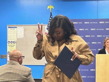 Lancaster had been exposed to welding through one of the companies she previously worked with. That exposure stayed with her, and eventually led Lancaster to Grand Rapids Community College’s Metallica Scholars Welding Bootcamp — a workforce training program funded by the legendary rock band Metallica through their nonprofit foundation, All Within My Hands.