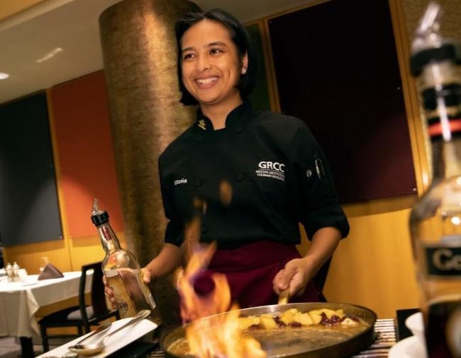 Uy has been making the most of her time at GRCC. She worked as a server and a culinary assistant at the Nations Cup competition in October 2019 and became a culinary assistant in Spectrum Health’s Culinary Medicine program. She and fellow student Thomas Brown competed in the NASA HUNCH Astronaut Culinary Challenge this past spring. Students from 52 culinary schools across the nation competed to create a new dish for astronauts on the International Space Station. The GRCC team came in second place.