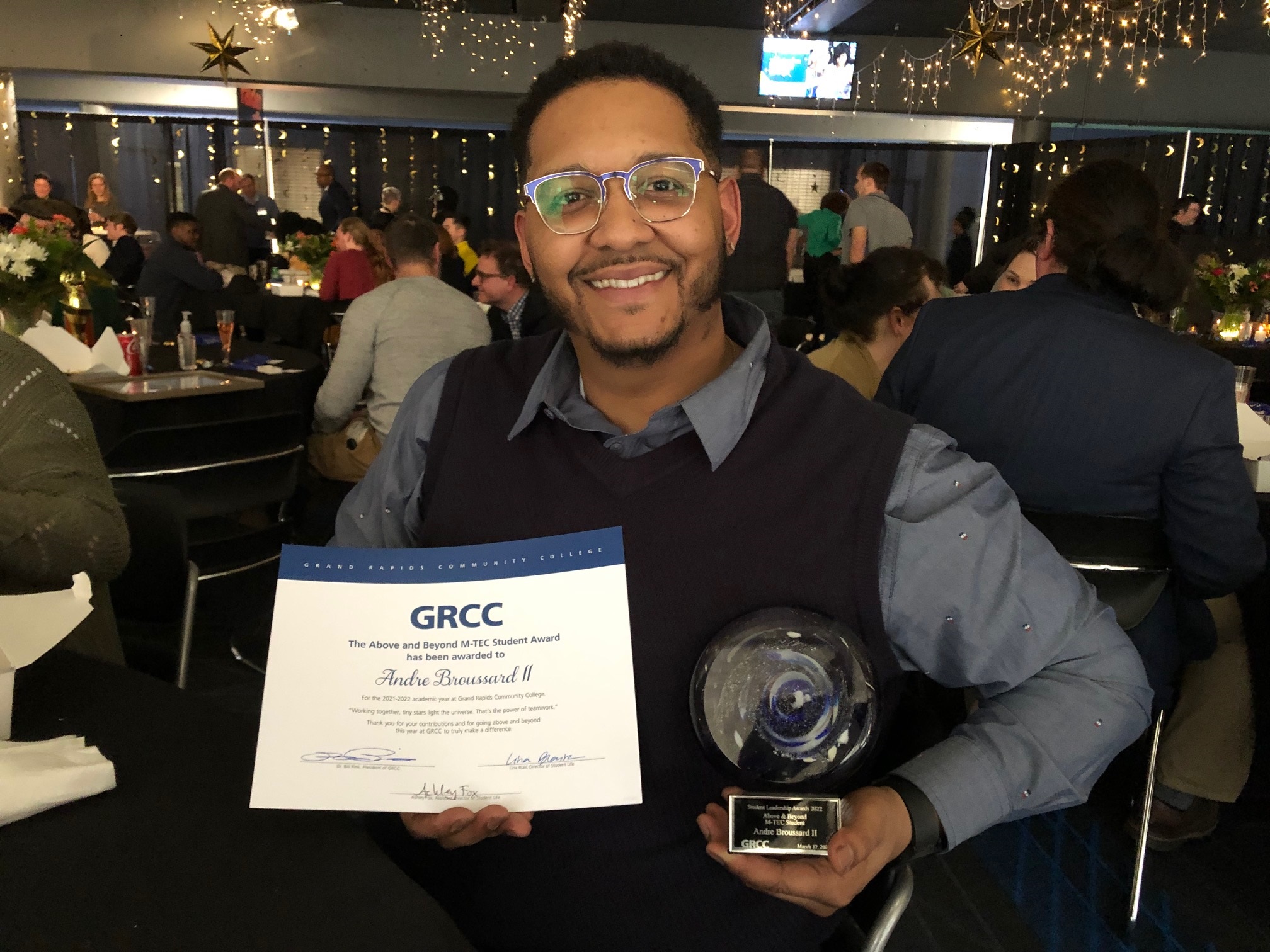 Andre was recently awarded the first ever MTEC Leadership Award. This award recognizes a student who has gone above and beyond expectation and Broussard has certainly done that!
