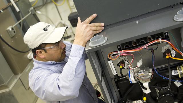 Grand Rapids Community College is making progress on its sustainability goals by installing a frequency drive on the chiller in Raleigh J. Finkelstein Hall (RJF). This upgrade improves the efficiency of the building’s HVAC system — saving an estimated 200,000 kWh of electricity and $20,000 per year.