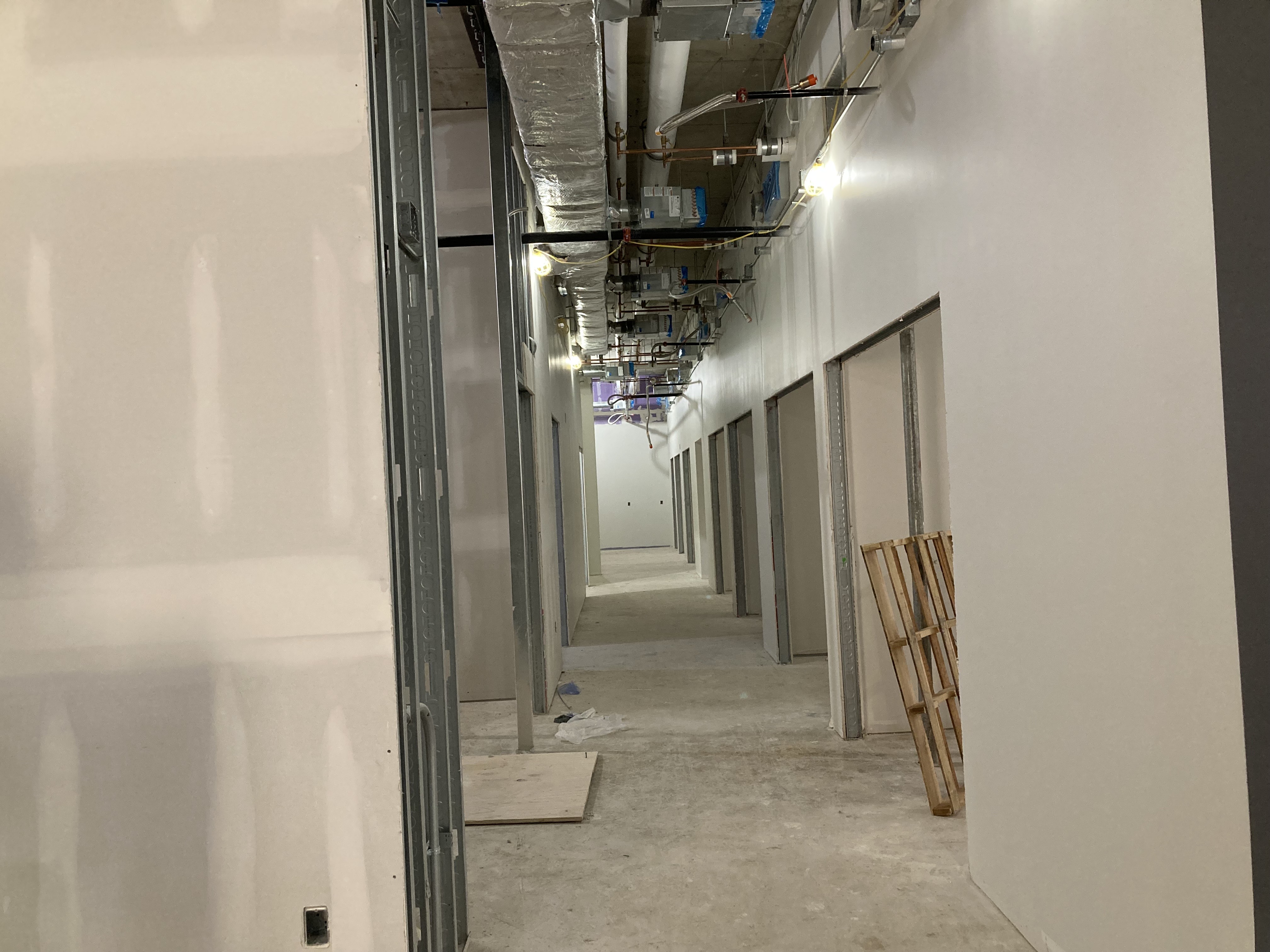 The project is now in the phase where lots of things are happening, but the progress isn’t always noticeable to the average person. The work, for now, will be more focused on infrastructure versus appearance. This includes installation and continuous work on things like: fire suppression, domestic water mains, gas lines, terminal units, hydronic piping, overhead conduit, electrical floor boxes, ductwork, elevator work, hollow metal frames, floor prep, restroom piping and access control wiring for security systems to name a few!