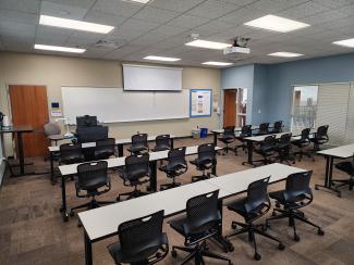 Features: Whiteboard; Carpet; Computer - Instructor Station; Projector - Ceiling Mounted; Screen